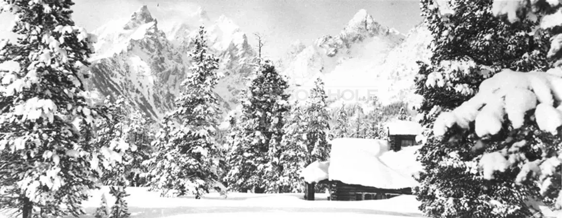 Home Description: Jenny Lake in the snow. Photograph by Harrison Crandall, Gift of Hildegard Crandall. PhotoId BC.0416