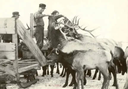 Home Handfeeding elk. S.N. Leek Collection, American Heritage Center
