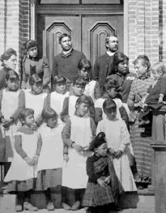 191. Rev Roberts, Laura Roberts and Sherman Coolidge outside Roberts Mission