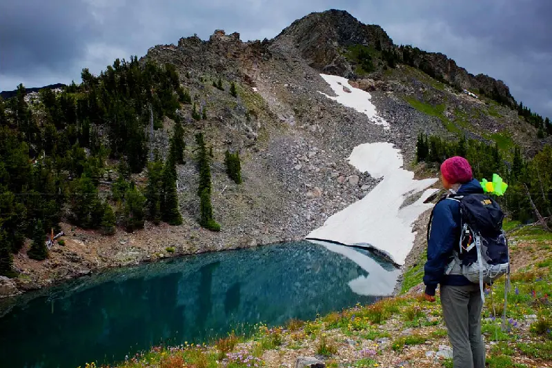 Rebecca Sgouros surveys an alpine lake in the northern Tetons